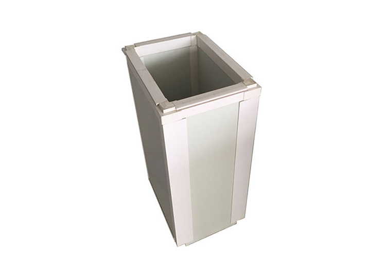 酚醛泡沫板與鋁箔復(fù)合制成夾芯板,然后加上專(zhuān)用法蘭配件,制成的酚醛復(fù)合風(fēng)管用于中央空調(diào)通風(fēng)。酚醛復(fù)合夾芯板其內(nèi)外表面是涂層鋁箔,中間層為酚醛泡沫材料,其綜合性能有較大的改觀,特別是在力學(xué)性能方面,如抗彎曲性、抗壓、脆性及加工性能等方面都有較大的改進(jìn),基本上滿(mǎn)足了空調(diào)通風(fēng)管的使用要求。